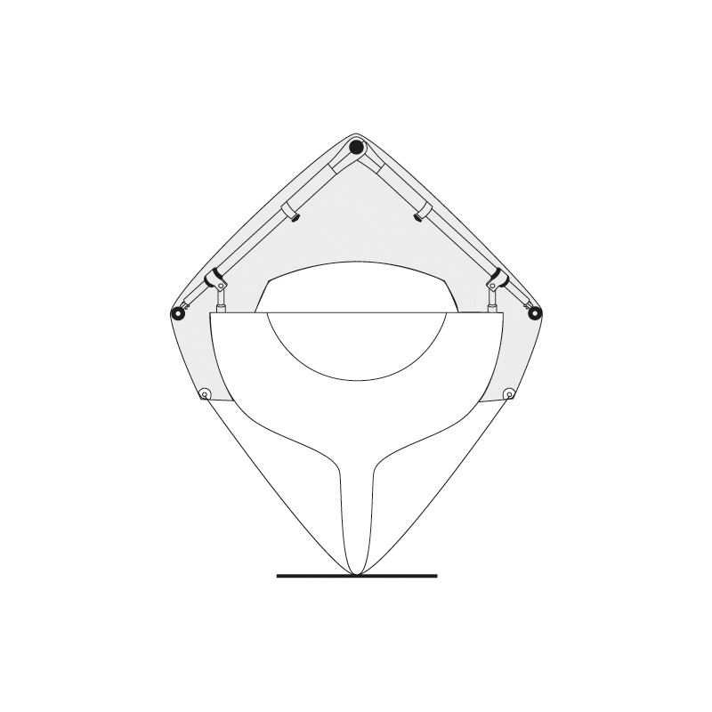 • Neljästä kahdeksaan teleskooppista jalkaparia, joihin kiinnitetään pitkittäiset veneen vapaalaiden ulkopuolella kulkevat tuuletusputket.