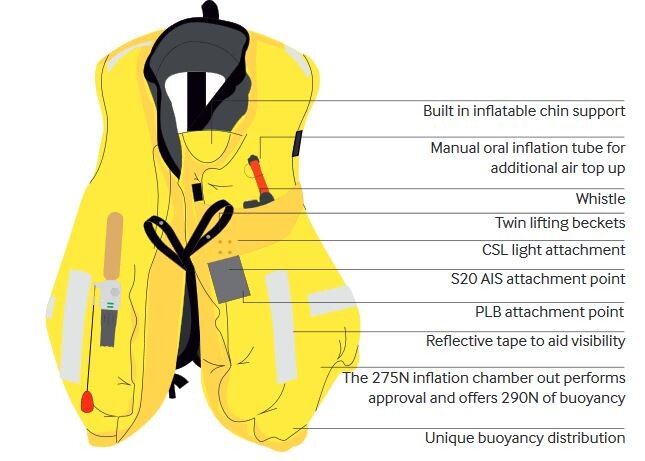275N XD- mallin ilmakammio muotoilunsa ansiosta ”ylisuoriutuu” tehtävästään ja tarjoaa oikeastaan 290N arvosta nostetta. Ainutlaatuinen nosteen jakautuminen takaa poikkeuksellisen hyvän kääntävyyden raskaankin vaatetuksen kanssa. Pelastusliivit täyttyneenä liikkuminen ja operointi on myös huomioitu kammioiden muotoilussa. Täyttynyt ilmakammio on varustettu heijastinteipeillä erittäin näkyväksi ja sisältää myös paljon muita tärkeitä ominaisuuksia, kuten sisäänrakennetun leukatuen, kiinnityspisteet hätälähettimelle ja tupla nostolenkit.
